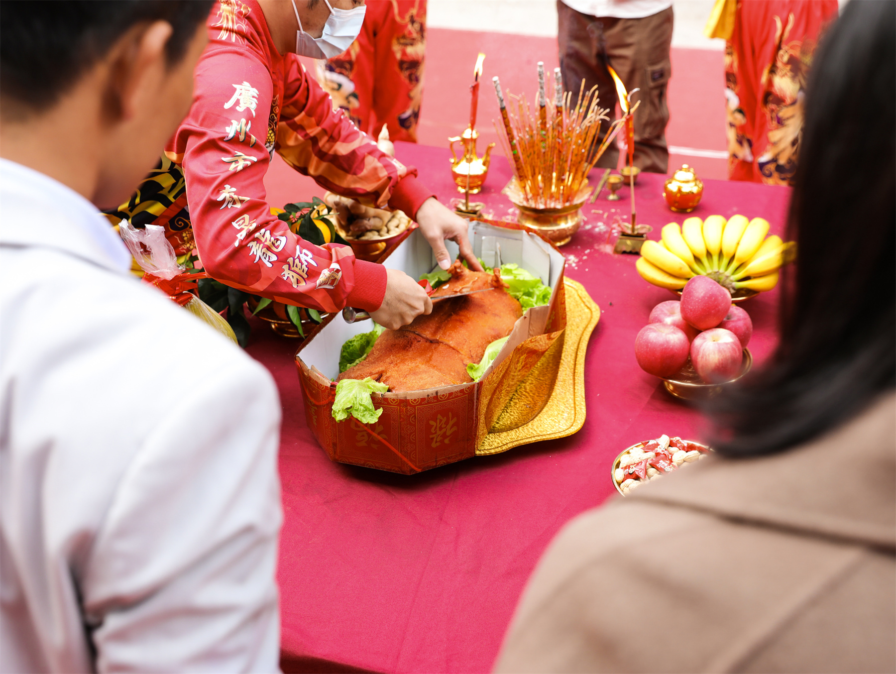 而随着金笔点睛的完成,四头醒狮一跃而起,为现场的观礼嘉宾带来了一场精彩的舞狮采青表演。