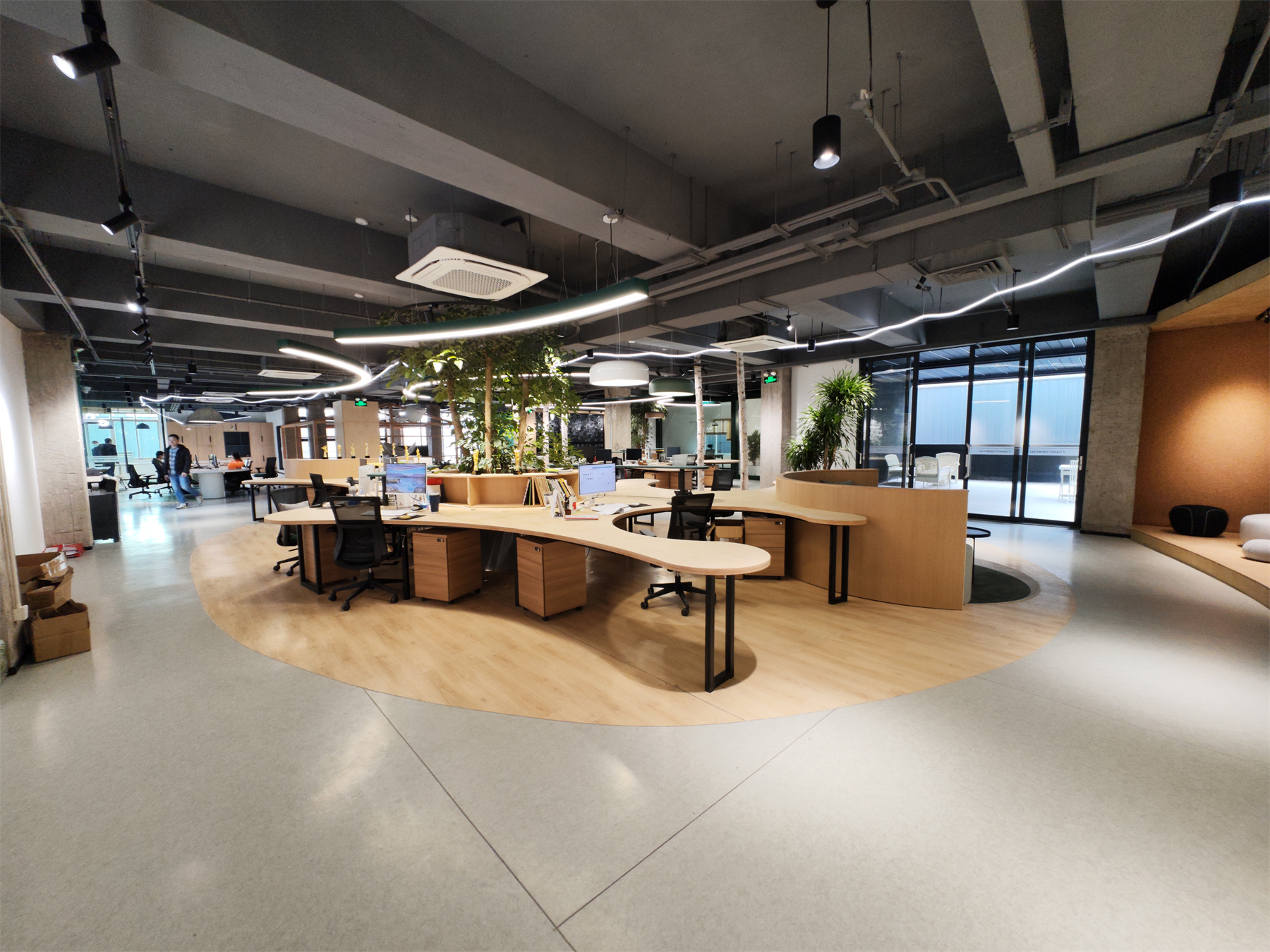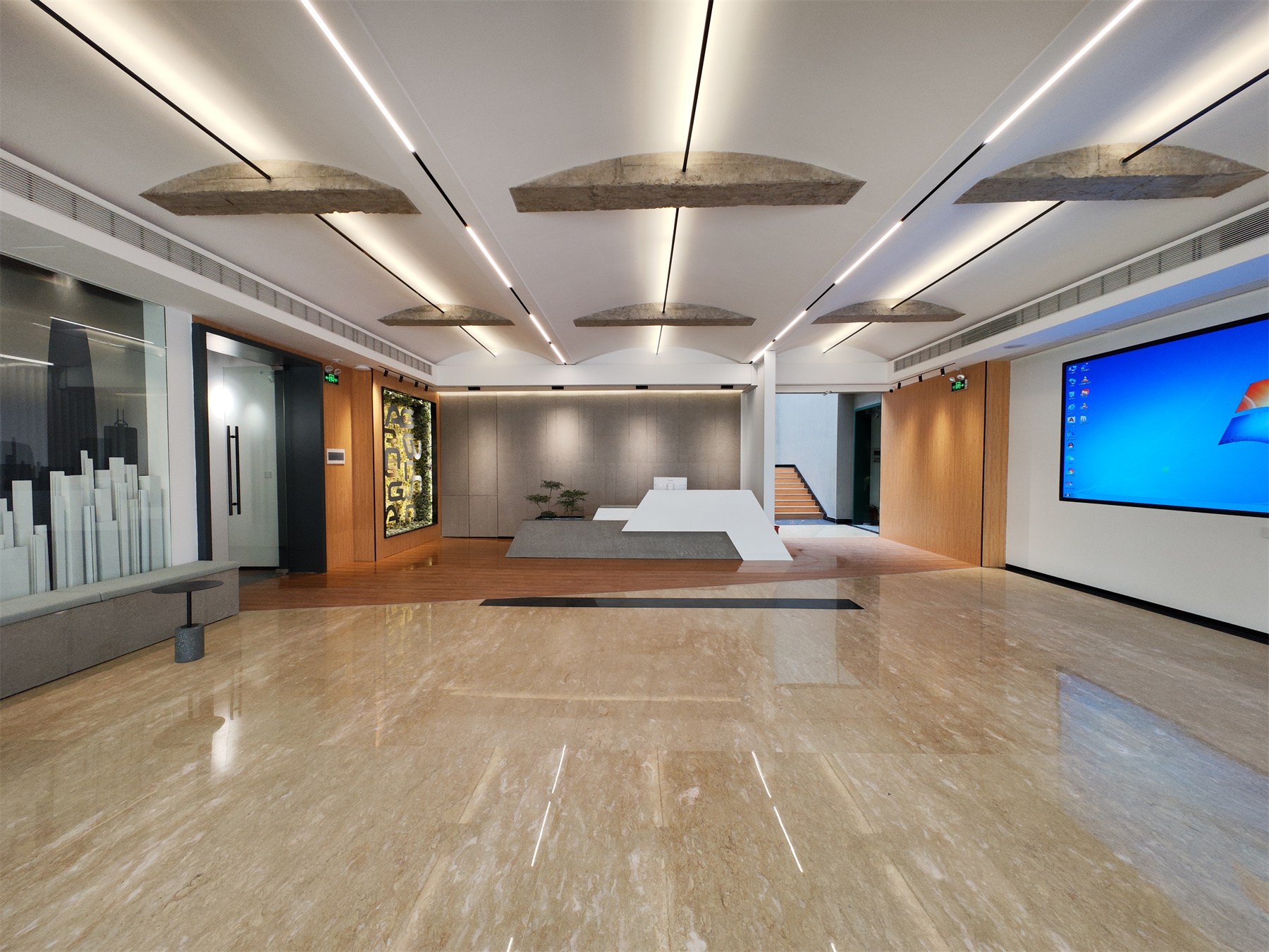 随后,现场来宾在格绿朗相关工作人员的陪同下参观了格绿朗新总部大楼。作为花园式办公大楼,格绿朗新办公楼集开放式办公区、多功能展厅、会议室、培训室、休闲吧、室外体验中心等,设施一应俱全。