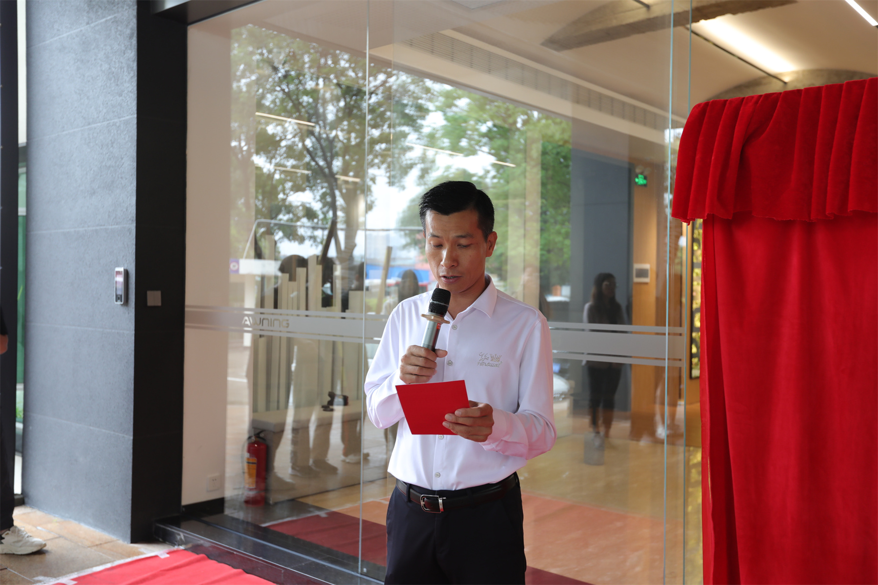 随后,大龙街道办领导与格绿朗、桂林电子科技大学双方代表联手进行了隆重的揭牌仪式,共同揭开合作的红色缎带,蕴意着掀开了校企合作的崭新篇章!