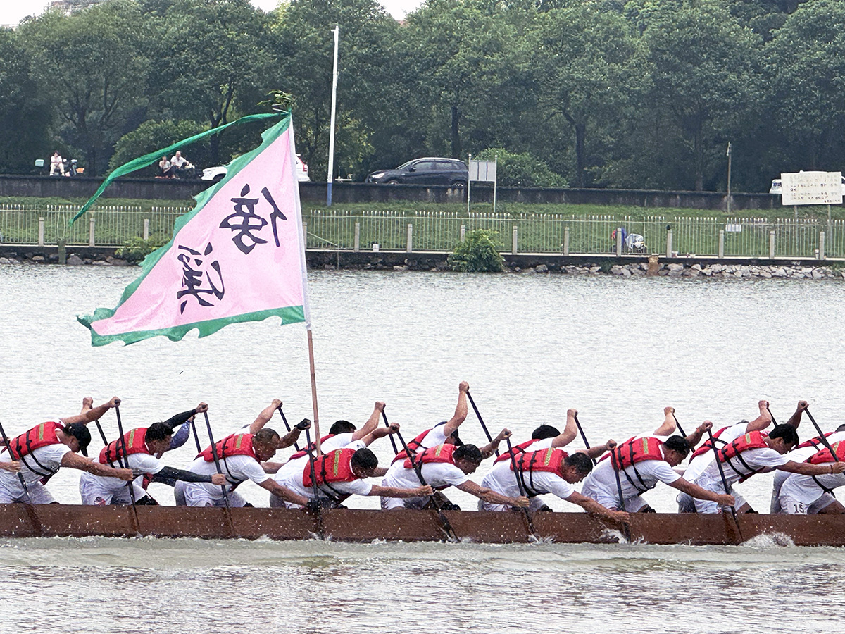 湖面上,一艘艘龙舟如箭般划过,水花四溅,展现出激昂的竞技风采。