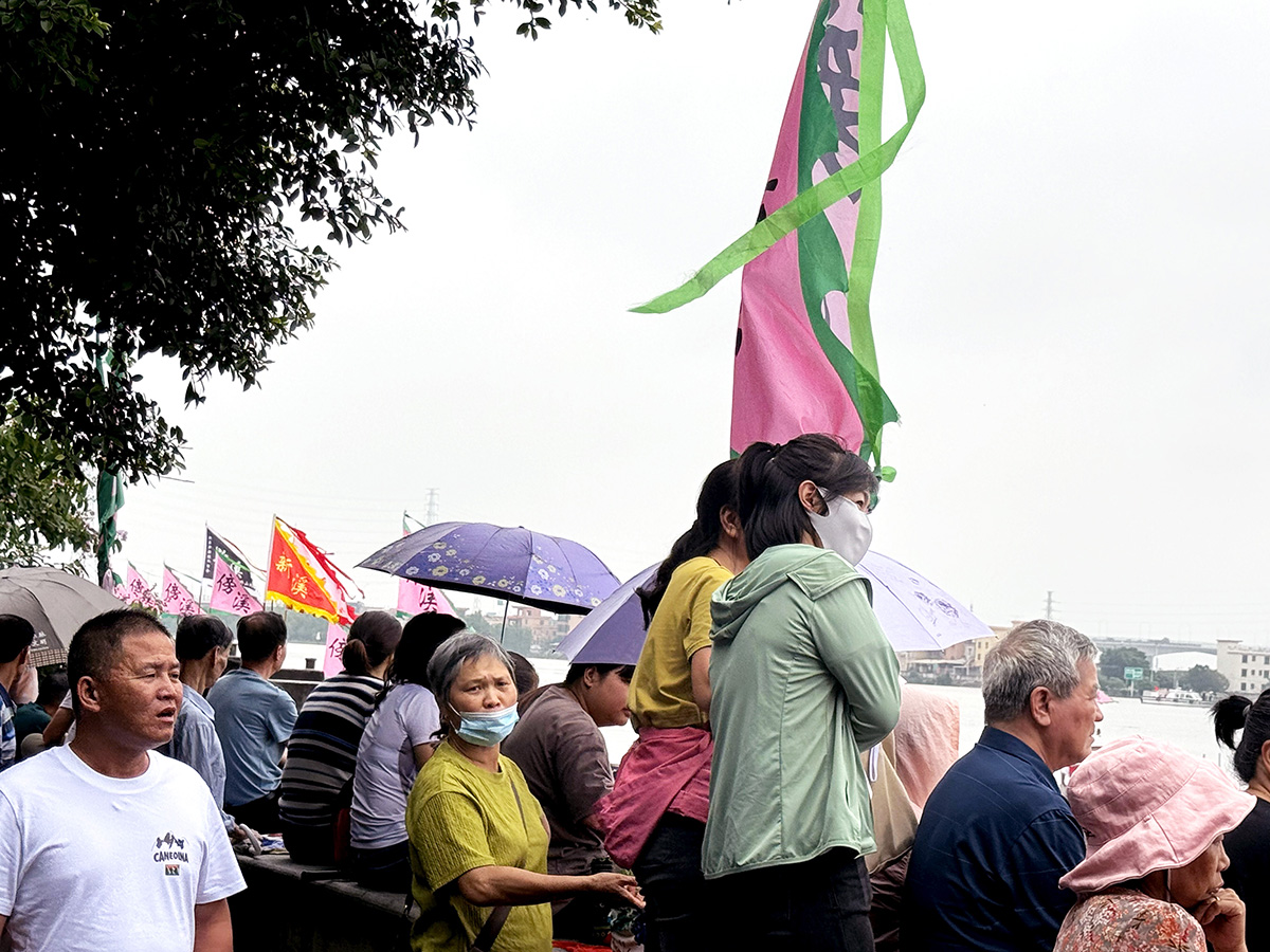 观众们的欢呼声此起彼伏,伴随着龙舟的飞速前进,构成了一幅动人的端午画卷。