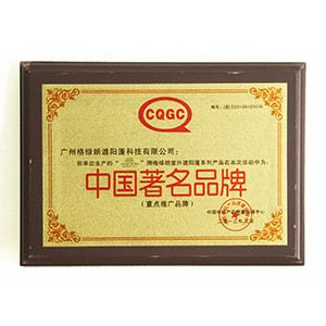 2015年 “格绿朗室外遮阳”品牌被“中国中轻产品质量保障中心”授予“中国著名品牌”