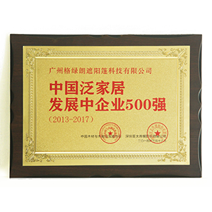 2014年  公司被“中国木材与木制品流通协会及深圳亚太传媒股份有限公司”授予“中国泛家居发展中企业500强”称号