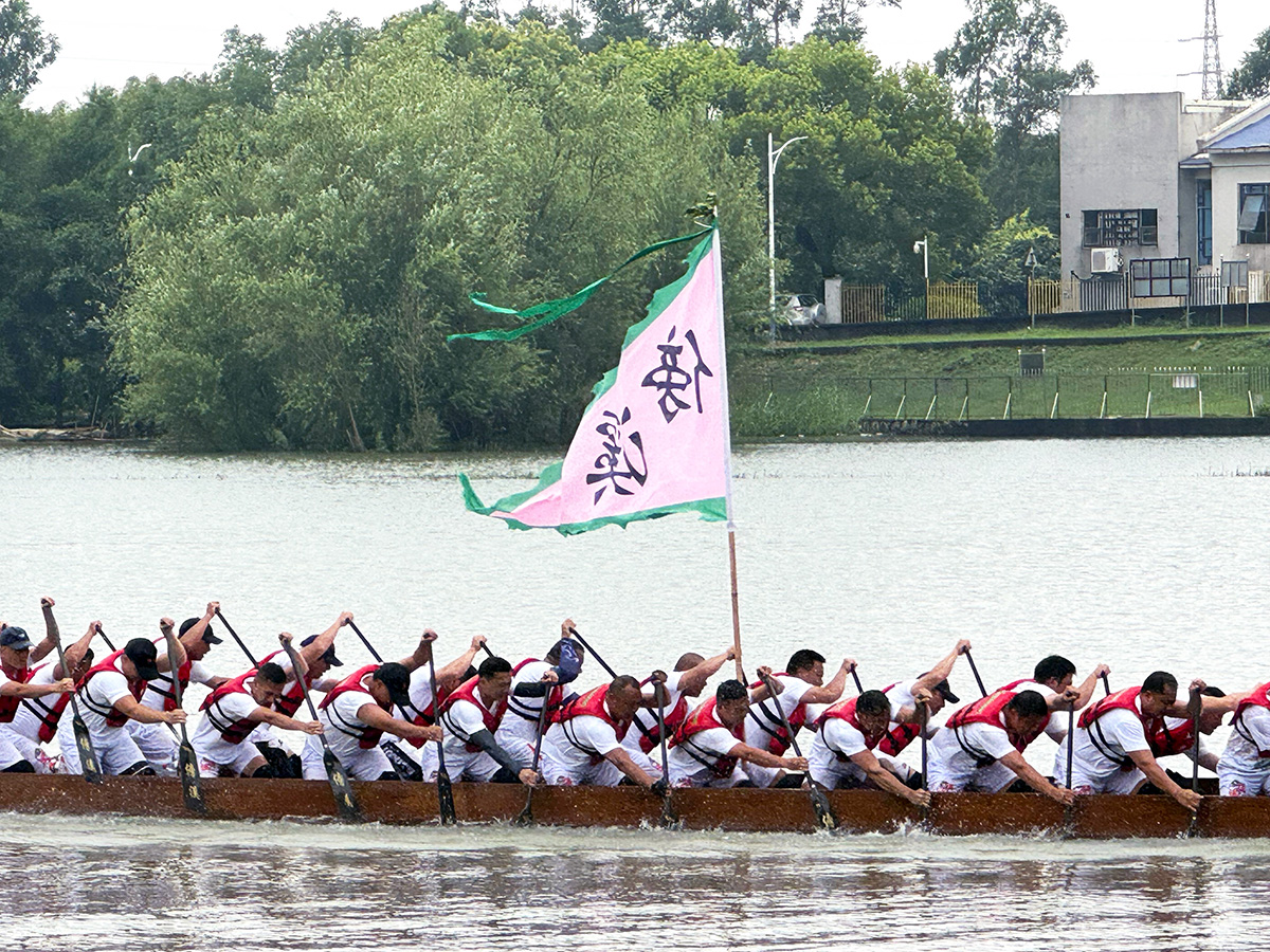 桨声激荡,龙舟队员们齐心协力,在水面上划出一道道优雅的弧线。