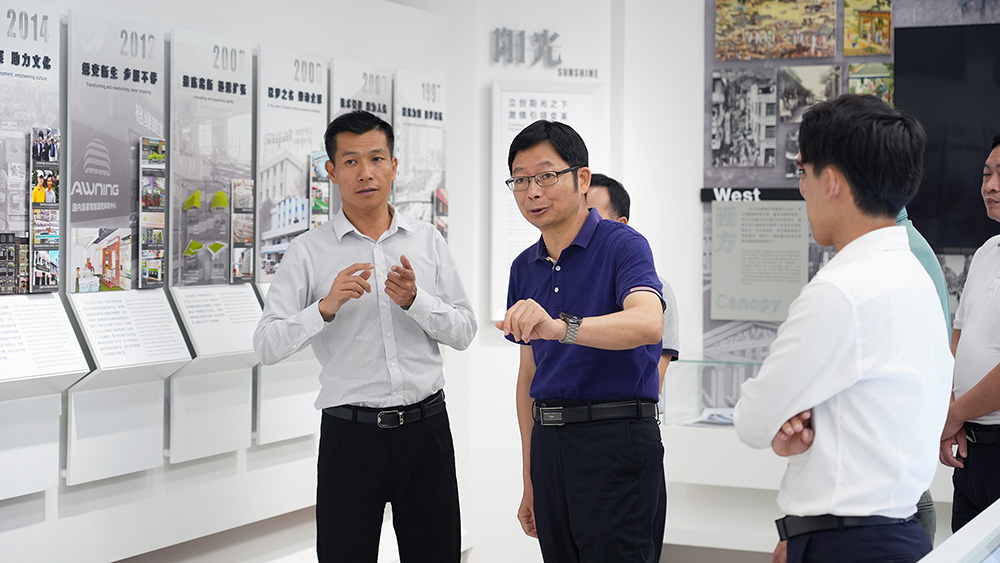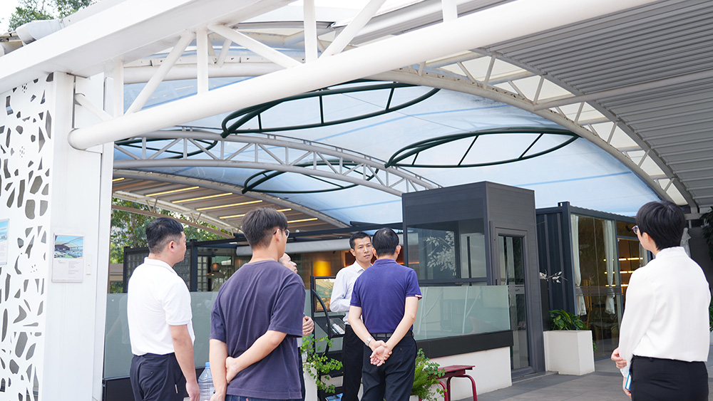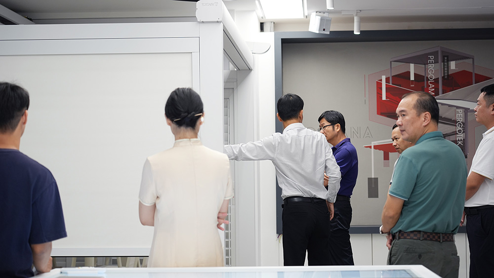 会后,领导一行在负责人的陪同下参观了格绿朗的企业展厅和产品场景体验区。多样化的室外遮阳产品和解决方案充分展示了公司在绿色节能领域的技术创新与市场实践。通过现场演示和讲解,领导们对我司产品的功能性、科技性及市场前景有了更加全面的了解。并对格绿朗多年来深耕绿色节能领域的成果表示赞赏,认为这些产品将为推动建筑节能、优化城市环境带来积极作用。